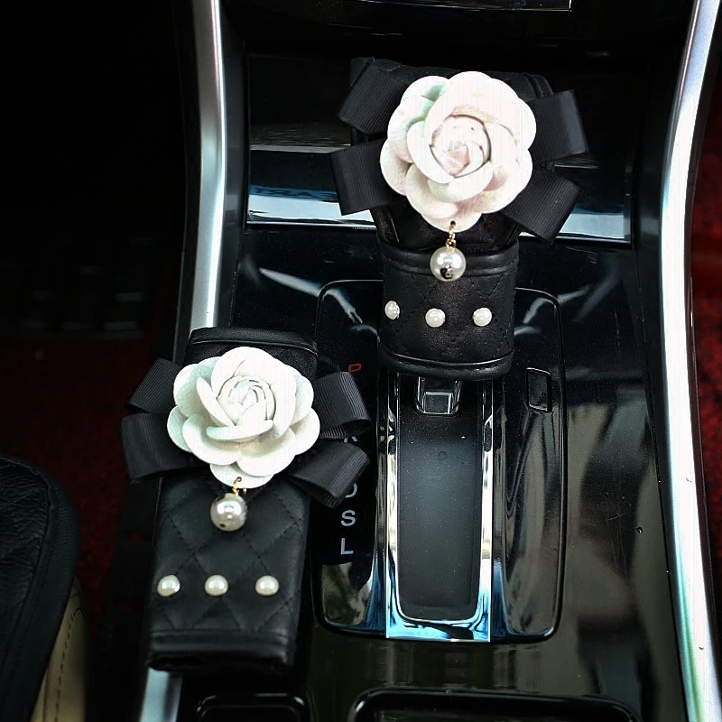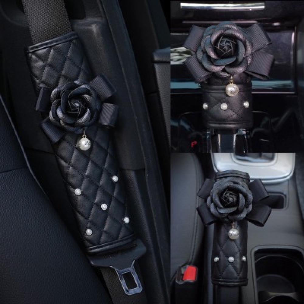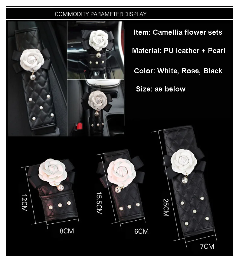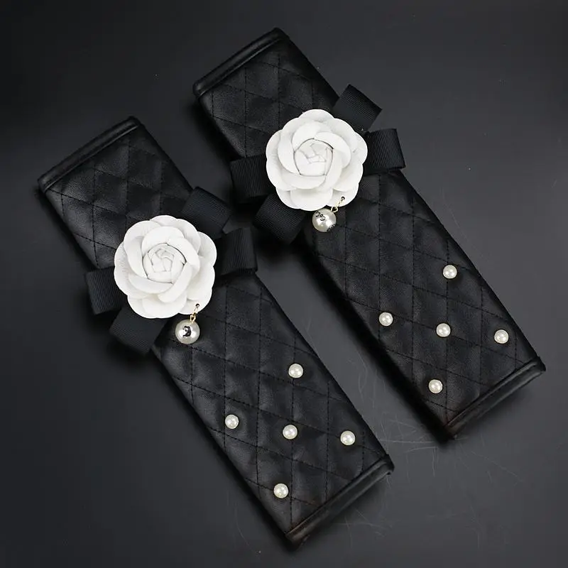 غطاء حزام الأمان لؤلؤي + زهرة الكاميليا